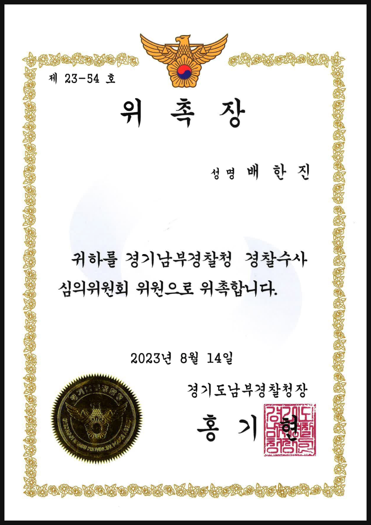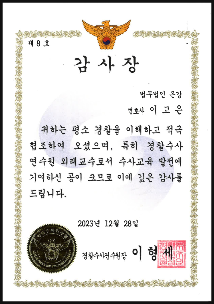· 기관 : 경찰수사연수원장 · 변호사 : 이고은