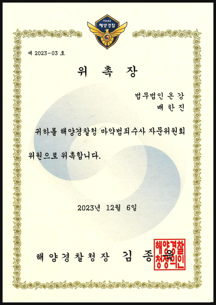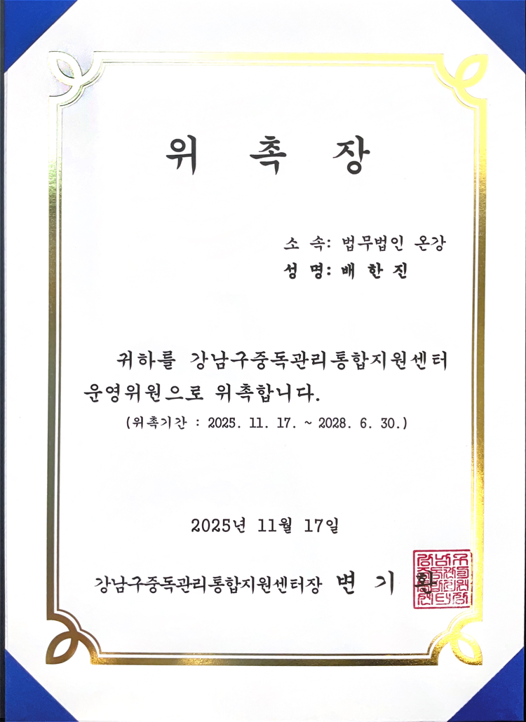 · 기관 : 강남구중독관리통합지원센터장 · 변호사 : 배한진