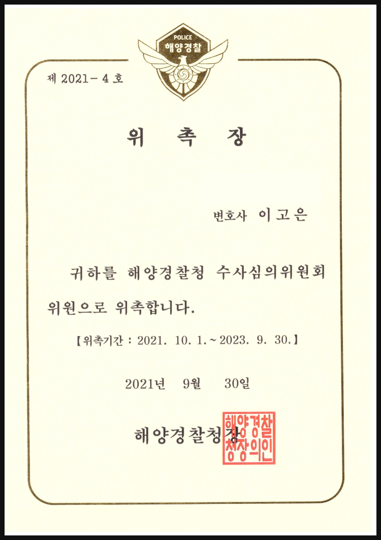 · 기관 : 해양경찰청장 · 변호사 : 이고은