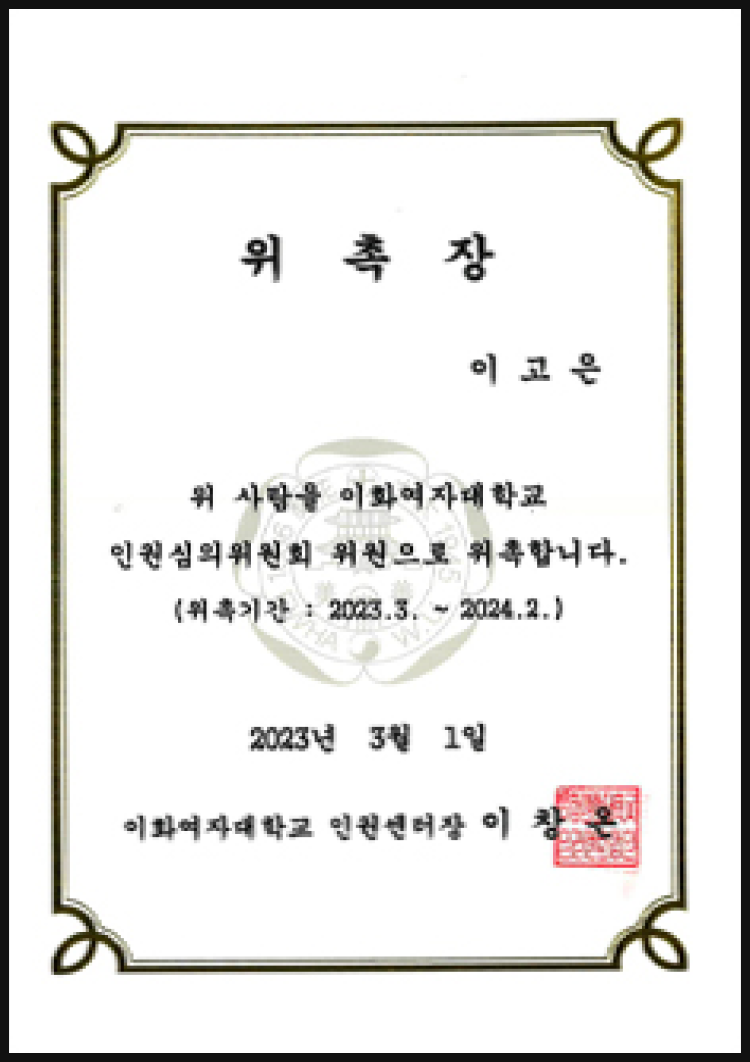 · 기관 : 이화여자대학교 인권센터장 · 변호사 : 이고은