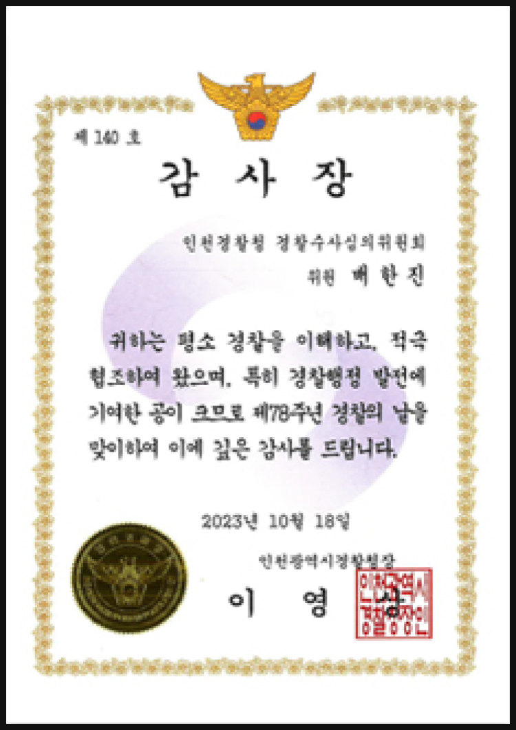 · 기관 : 인천광역시시경찰청장 · 변호사 : 배한진