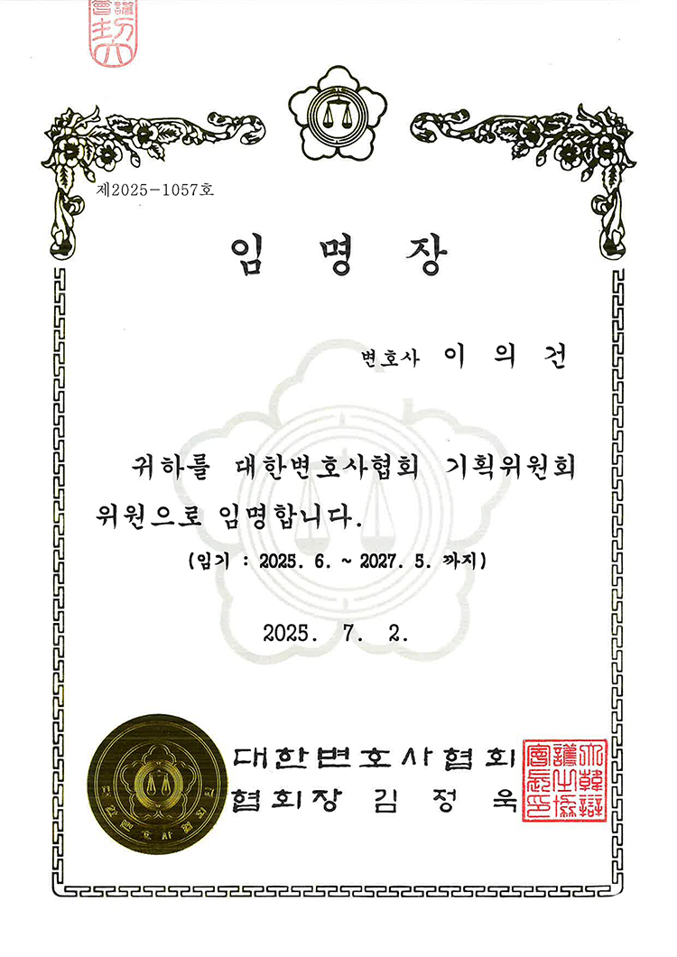 · 기관 : 대한변호사협회 · 변호사 : 이의건